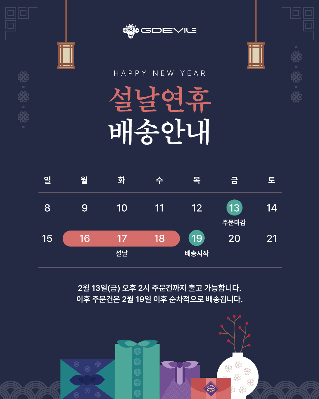 2026년 설 명절 휴무 및 배송 공지